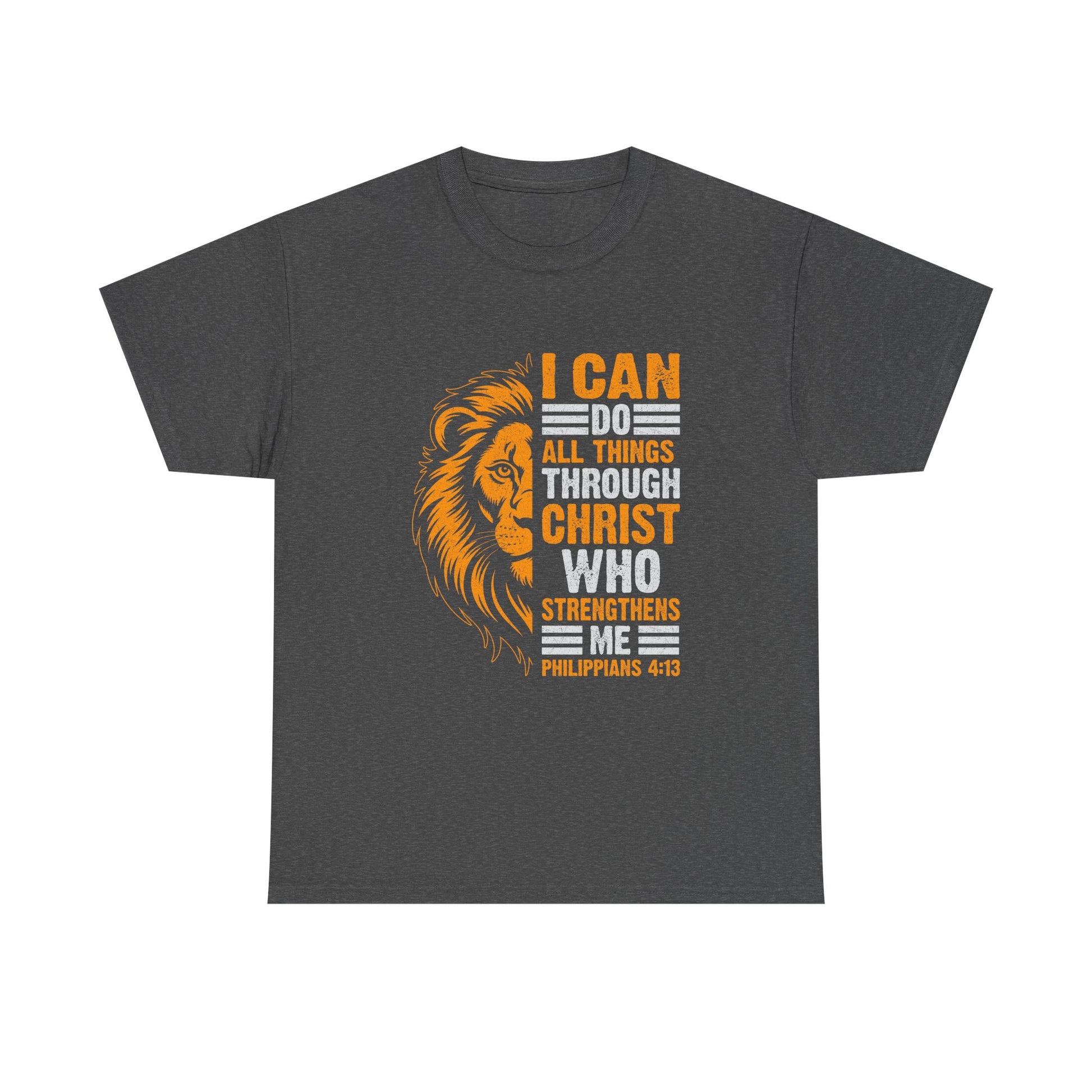 Introducing the ultimate Unisex Heavy Cotton Tee, designed for comfort and inspired by strength and faith. This tee makes a bold statement with its striking lion graphic and uplifting message, perfect for anyone embracing their journey with confidence. Whether you're attending church services, celebrating a spiritual milestone, or simply enjoying a casual day out, this versatile shirt is suitable for every occasion. It's a thoughtful gift for friends and family during holidays like Easter, Christmas, and even birthdays. Wearing this tee empowers you to express your beliefs and connect with others who share your values, making it an essential addition to your wardrobe.